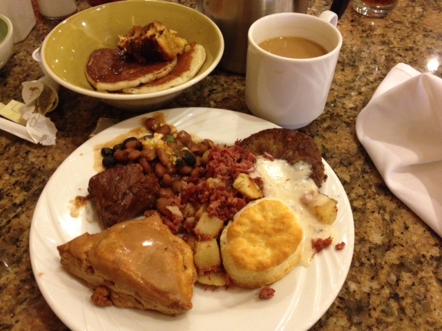 The next morning, we went to Hash House A Go Go in The Quad, it’s a new one of our favorites and we wanted to take my family and show them the ridiculousness size of their food! We ordered Andy’s Sage fried chicken benedict. It was a biscuit covered with mashed potatoes, griddled mozzarella, scrambled eggs, bacon, fried chicken breast, and covered in chipotle cream sauce. Everything in moderation right?!