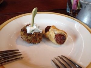 Lamb keftas and sausage in a blanket