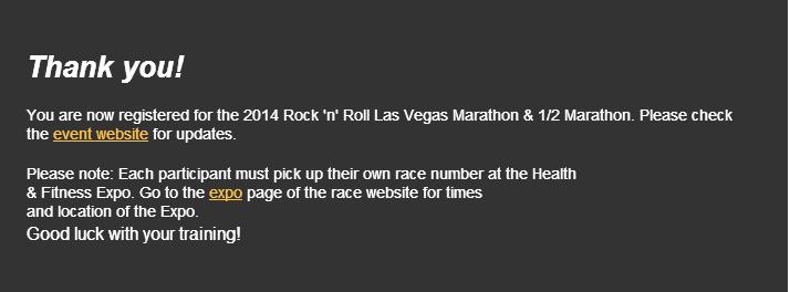 So on to gettin my booty movin’, the only race we had considered running this year was the Las Vegas Rock n Roll half marathon, the insane entry fee last year was $185. In January they sent out a special for $99 if we wanted to register for this year. We weren’t sure if it would even be possible only a few months after the wedding, but we thought we might as well enter while the prices are so much cheaper. We were checking out flight and hotel prices a couple weeks ago, and they were so cheap that we had to jump on the opportunity. So we’re all booked up now and we’re goin back to Vegas!