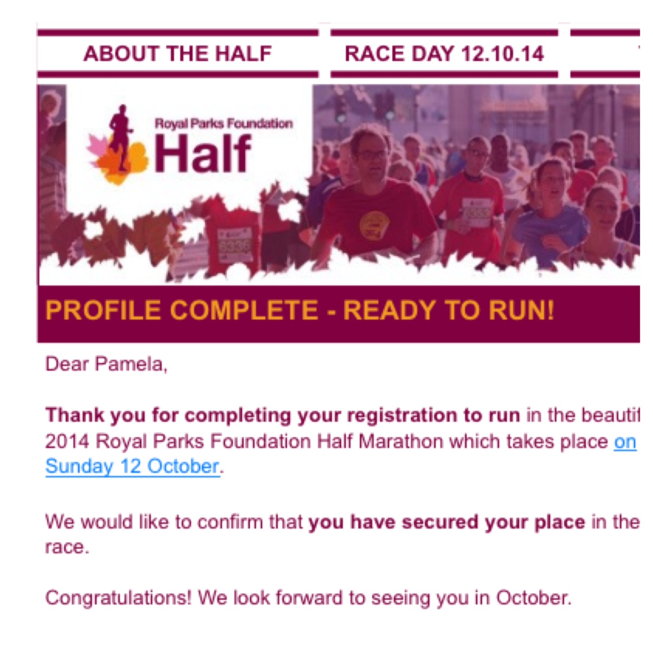 This race takes place in the fall and is through central London and all the famous sights. The entry is done through a ballot so it’s really hard to get into, we applied last year and didn’t get in, and applied again this year thinking the same would happen. Well, I got a place, but Greg didn’t. Luckily he found a way to get a spot through a charity, so we are run-ning! (Forrest Gump style)