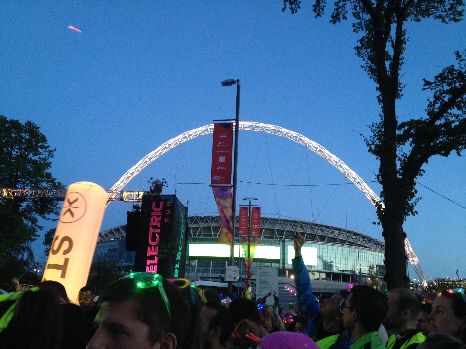 1. Electric Run- Last Saturday night we ran the 5K Electric Run. It was held atWembley Stadium, and the course was pretty much running around the stadium and back. They had different stopping points around the course where music was playing and people could stop and dance and take pictures. Once you finished, they had a stage with dance music playing where everyone gathered and hung out dancing there. There was also beer, burgers, and fish and chips available for purchase after, it was funny seeing people walking around with pints of beer after a run!
