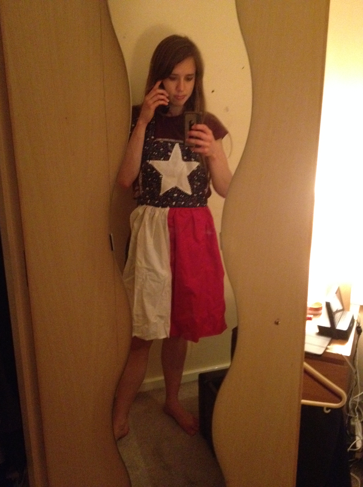 The only veil I found that I really liked was from David’s Bridal that I saw when I was back in Seattle for Christmas. I didn’t have any luck finding anything similar here, so I ordered the David’s Bridal one online to my moms house. She was definitely taking her time sending it, and it turns out because she was working on this Texas apron for me, I sure love my Momma!