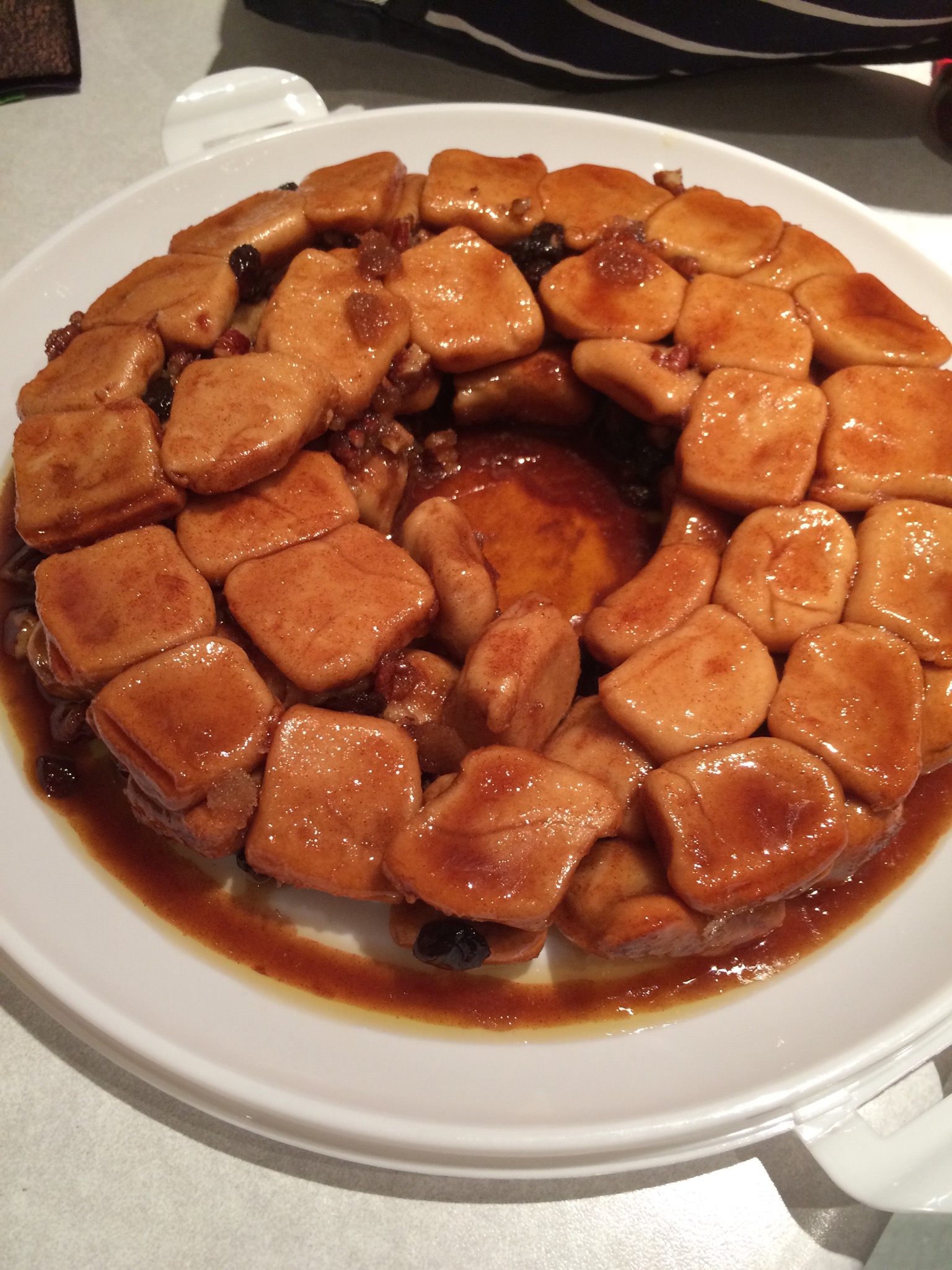 I tried a piece when it was ready and it was really dense and kind of hard, not as light and fluffy as it’s supposed to be so not sure what happened to my yeast. Oh well, hopefully it will be buttery, cinnamony and brown sugary enough for them to like it.