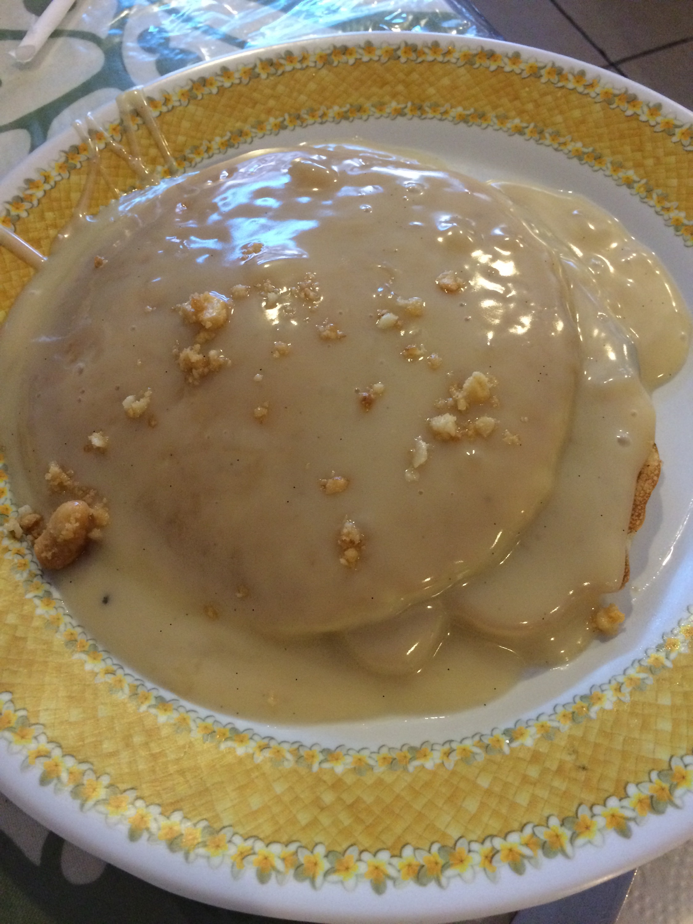 Hash House A Go Go. Grilled banana pancake with pecans. I think I ate about a qtr of this, plus a biscuit on the side of course. I take advantage of biscuits when in ‘Merica.